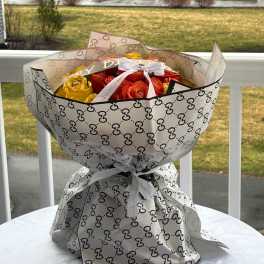 Price: $95.00 Yellow,red and pink roses along side baby breath arrangement by lav.ishbouquets Product Tags: Next-day Delivery