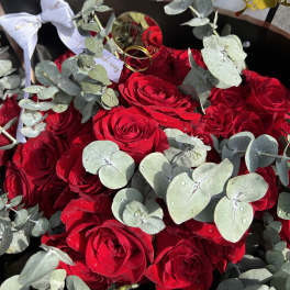 Price: $110.00 Red roses, red peonies and red wine by lav.ishbouquets Product Tags: Next-day Delivery